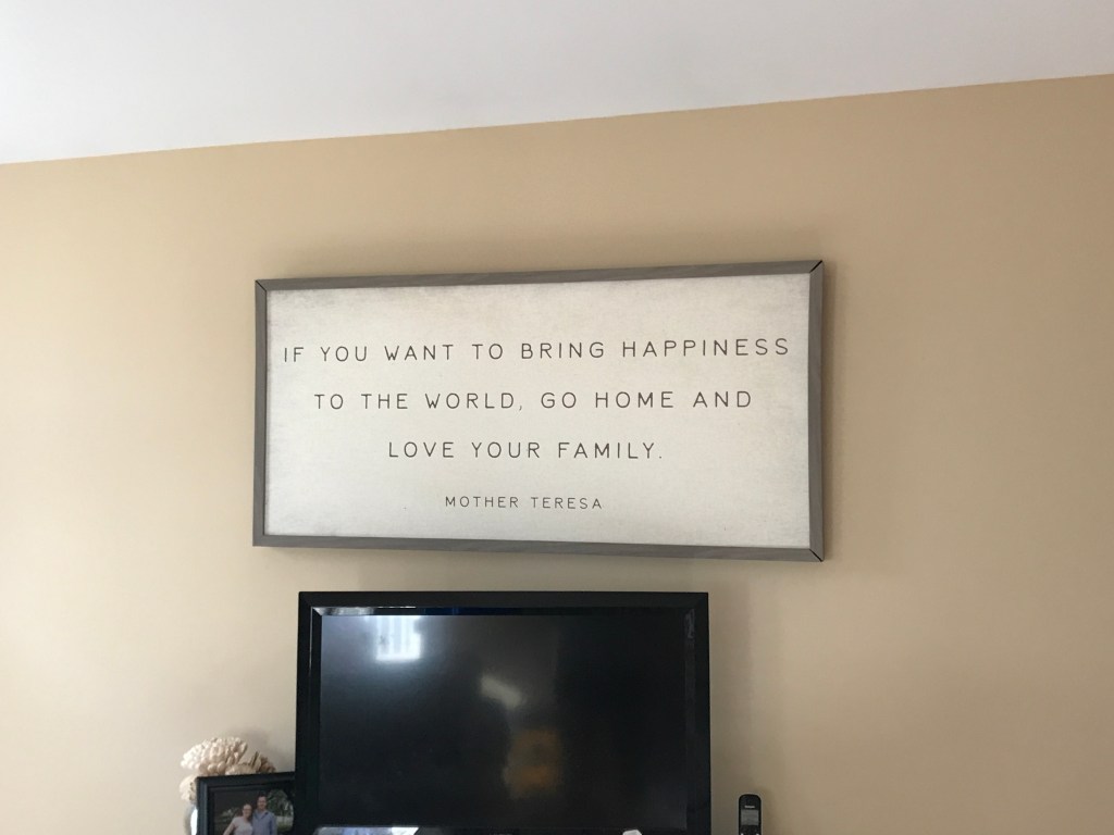 Love starts in the family. This was especially meaningful to me. I struggled for many years if staying home to raise my kids was ‘meaningful enough’ work according to some mysterious earthly standard. We have a framed piece of art in our living room with a quote from Mother Teresa, and we look at it every single day.