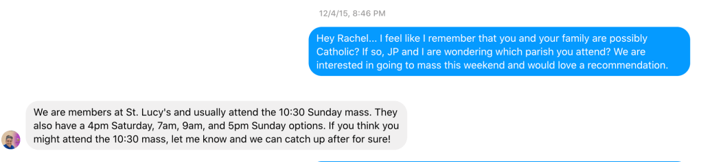 We got home from dinner and I sent a message to one of my friends, who I suspected might be Catholic: